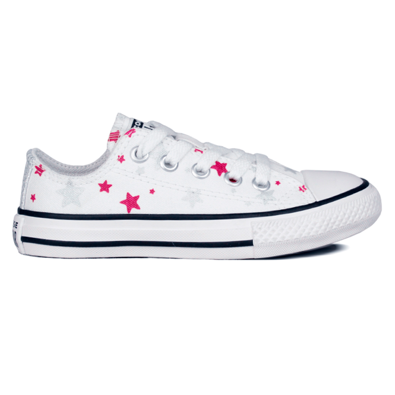 O All Star Kids Ox Star Branco são um convite ao universo das estrelas, com seu design envolvente repleto de estrelas brilhantes. Feitos com materiais resistentes em lona, proporcionam ao seu pequeno um impulso cheio de energia. O amortecimento em EVA oferece conforto duradouro, acompanhando cada passo ao longo do dia. Possui o logo patch clássico "Chuck Taylor All Star" no cano.