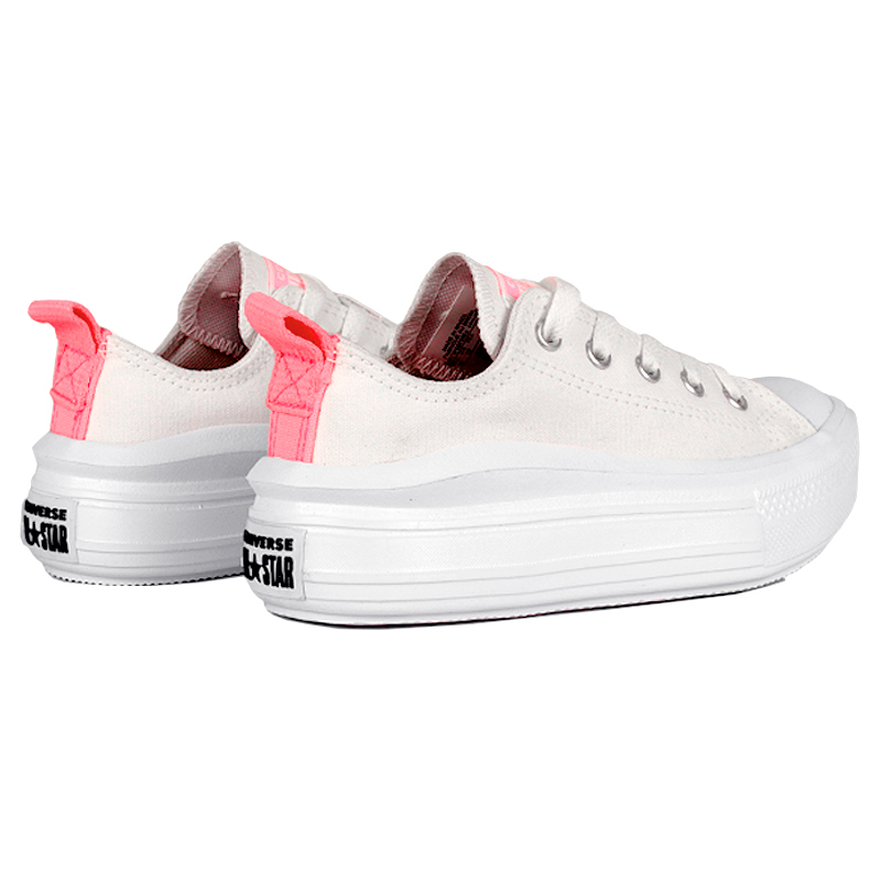 O modelo All Star Move Kids Ox Branco/Rosa é a plataforma da Converse reimaginada para as crianças. Seu cabedal é feito de lona de algodão resistente, com detalhes coloridos no puxador. A entressola plataforma é leve, durável e confortável, garantindo o estilo e o conforto que toda criança merece.