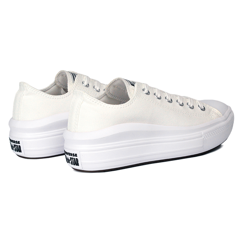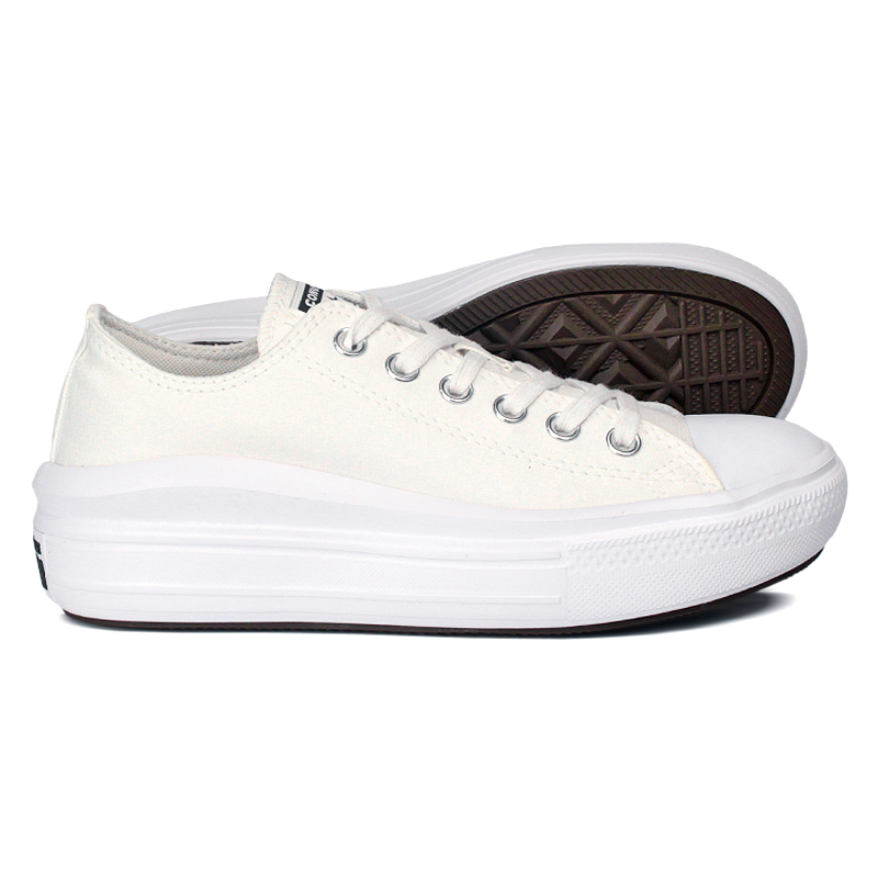 O All Star Move OX Branco atualiza o clássico Chuck Taylor com uma sola plataforma em EVA superleve, oferecendo leveza e elevação no dia a dia. Com cabedal de lona resistente, o modelo de cano baixo traz ilhós chanfrados que adicionam um toque moderno ao visual. A palmilha em PU moldado garante mais conforto na pisada, enquanto a entressola com aproximadamente 44 mm de altura entrega o visual elevado que marca a silhueta.