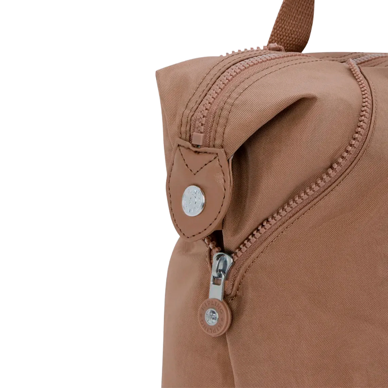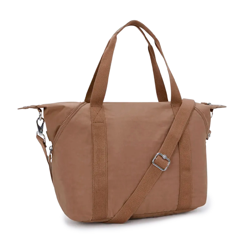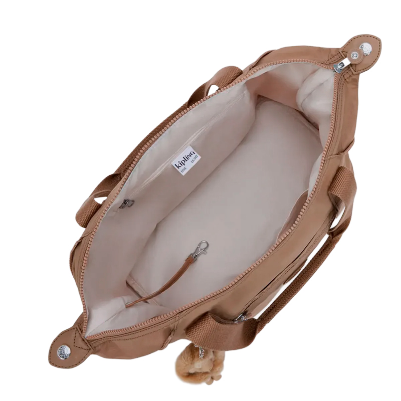 A Bolsa Kipling Art Early Tan é feita em nylon ultra leve e resistente, ideal para o uso diário. Possui compartimento principal com zíper, bolso frontal zipado e bolso externo aberto, além de alças duplas de mão e alça ajustável removível para uso crossbody ou de ombro. Conta com fechos de zíper e botões de pressão nos cantos que permitem ajustar levemente o formato da bolsa. Conta com chaveiro Kipling Monkey e logo circular da marca em destaque. DIMENSÕES APROXIMADAS: 44cm x 27cm x 20cm.