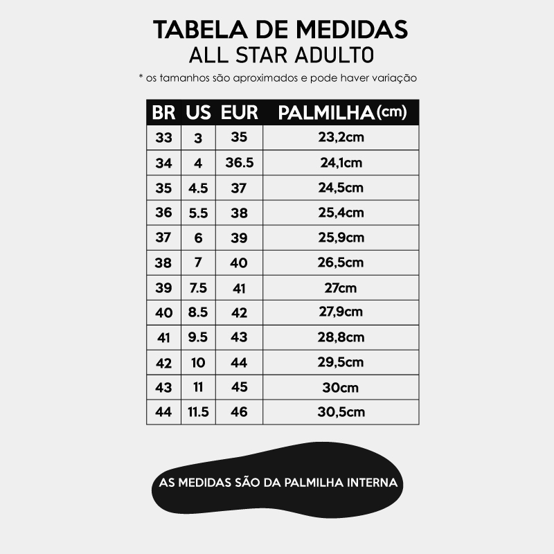 | Tamanho | 33, 34, 35, 36, 37, 38, 39 |