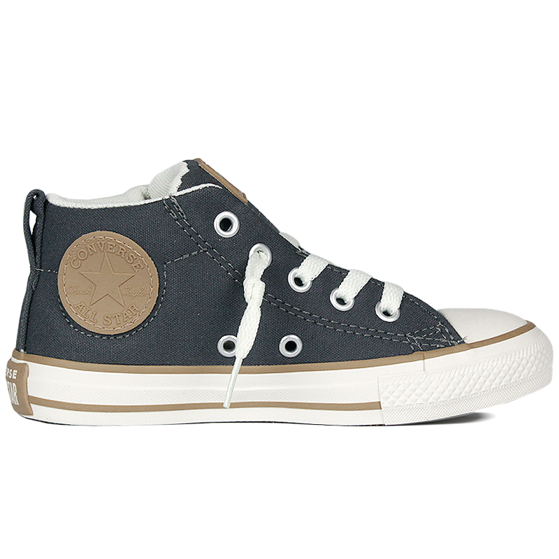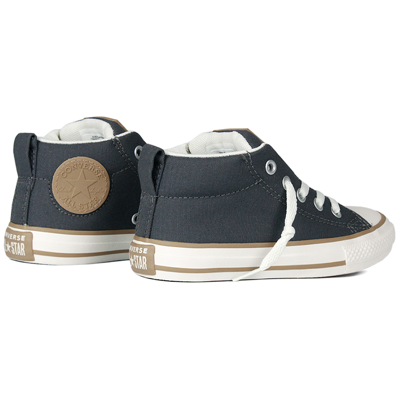 O Chuck Taylor All Star Hi Kids Pavement Tuff Cinza traz uma proposta urbana com influências do universo do skate. Confeccionado em lona resistente, possui acabamento robusto e detalhes que reforçam a inspiração street, como o patch no tornozelo com textura emborrachada. O modelo conta com colarinho acolchoado e ajuste amplo, oferecendo maior conforto e liberdade de movimento para o dia a dia. A palmilha em EVA proporciona leveza e suporte durante o uso, enquanto os acabamentos contrastantes destacam a identidade original Converse.