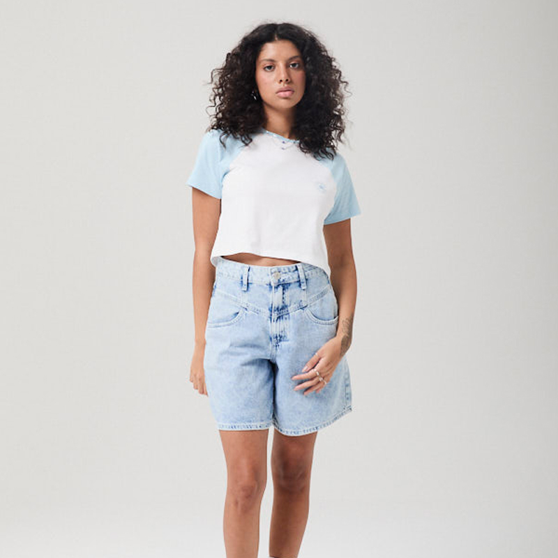 A camiseta cropped Raglan Patch Logo da Converse é uma peça que une estilo esportivo e conforto. Confeccionada em jersey de algodão macio, possui mangas raglan contrastantes que proporcionam um visual dinâmico e liberdade de movimento. O design cropped e a modelagem boxy oferecem um caimento moderno e descontraído, enquanto a gola canelada com detalhe em V adiciona um toque de sofisticação. O icônico patch Chuck Taylor está posicionado no lado esquerdo do peito, destacando a tradição da marca.