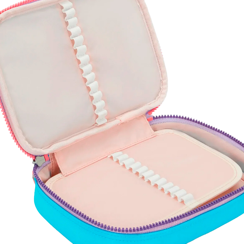 O Estojo Kipling 100 Pens Galaxy Turc FC é o clássico “grandão” da marca, feito para quem realmente carrega muitas canetas, marcadores e acessórios no dia a dia. Em formato estruturado, ele traz um compartimento principal com abertura em zíper que se abre quase por completo, facilitando a visualização de tudo o que está dentro. Por dentro, são 26 elásticos organizadores pensados para manter canetas, lápis e marcadores no lugar, enquanto o espaço livre acomoda até 100 unidades sem apertar. Construído em poliéster leve e resistente, o 100 Pens Galaxy Turc FC suporta bem a rotina escolar ou de escritório, com um corpo firme o suficiente para proteger o conteúdo dentro da mochila. As dimensões aproximadas de 15 cm x 21 cm x 5 cm entregam um estojo grande, mas ainda prático de transportar.