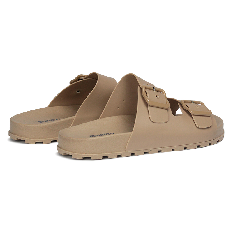 A Folk Birken atualiza o clássico de duas tiras com fivelas ajustáveis e base confortável para o dia todo. O cabedal é em EVA, de toque macio e fácil de limpar. A estrutura palmilha + entressola em EVA entrega leveza, enquanto o solado tratorado garante tração e durabilidade.