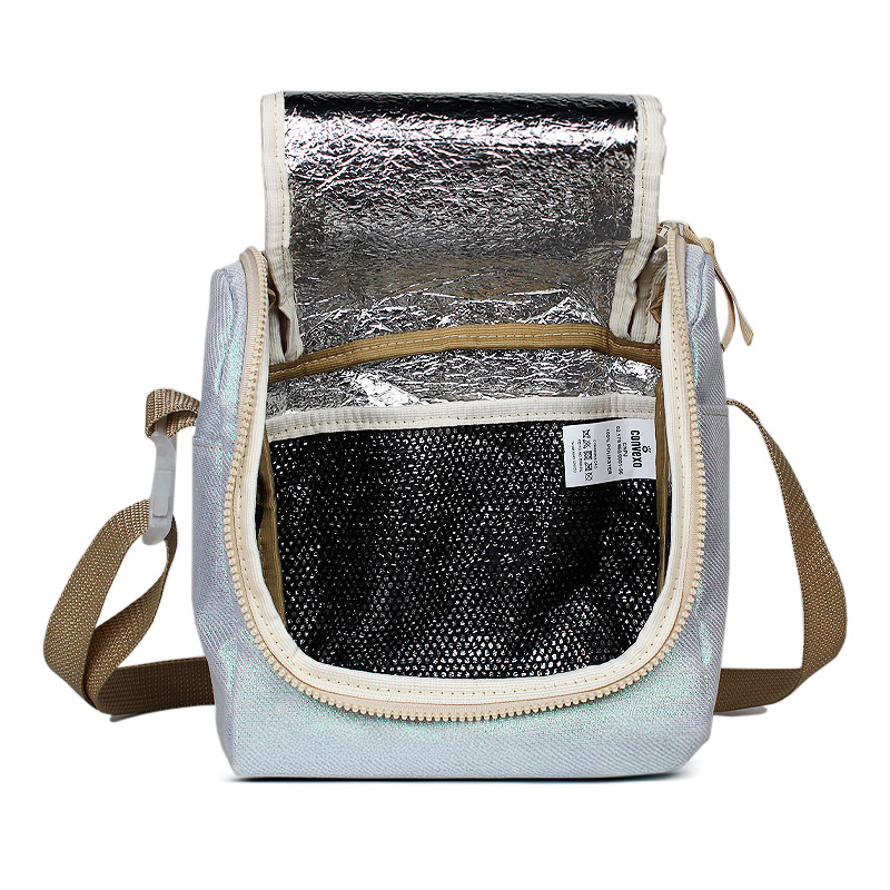A Lunch Bag Lurex Ouro Light destaca-se pelo brilho do material lurex e praticidade no dia a dia. Com alça de ombro ajustável, oferece proteção no transporte. O forno térmico mantém a temperatura ideal dos alimentos, e o patch frontal da marca adiciona um toque de estilo personalizado.