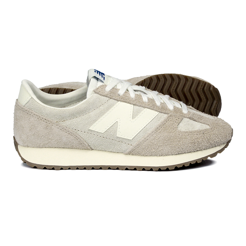 O tênis New Balance 471 Marrom Claro reúne estética vintage com funcionalidade moderna. Seu cabedal em couro confere durabilidade, enquanto a entressola em EVA com perfil em cunha e o solado em padrão espinha de peixe trazem referência direta aos modelos de corrida dos anos 70. O contraste entre detalhesmarrom claro e off-white reforça o visual retrô-sofisticado.