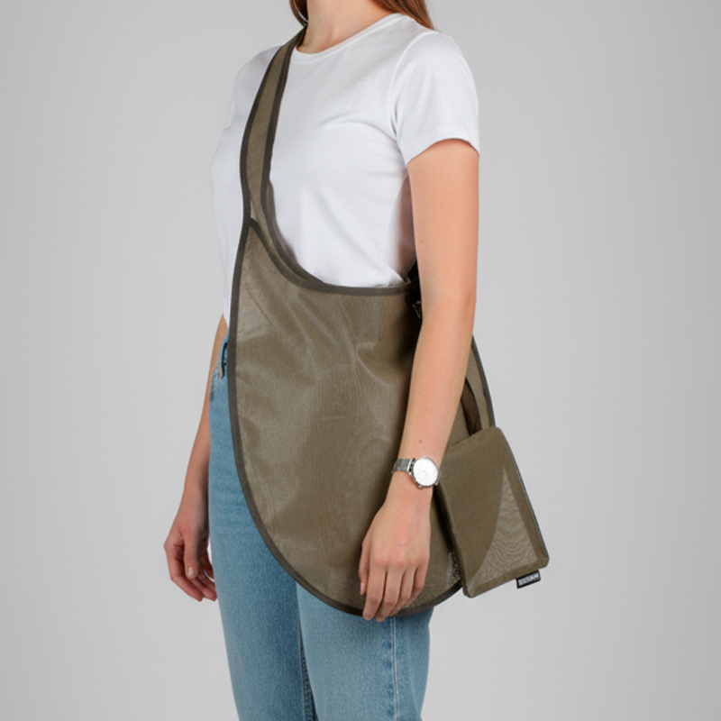 O Saco Tela Meia Lua Marrom Claro é um modelo hobo em poliéster estilo tela, leve e maleável. Possui fechamento por botão magnético e acompanha pouch/necessaire removível preso por mosquetão. Estrutura ampla para volume sem rigidez e caimento plano quando vazia. TAMANHO APROXIMADO: Bolsa 40 cm (A) × 44 cm (L) — Pouch 18 cm (L) × 13,5 cm (A).