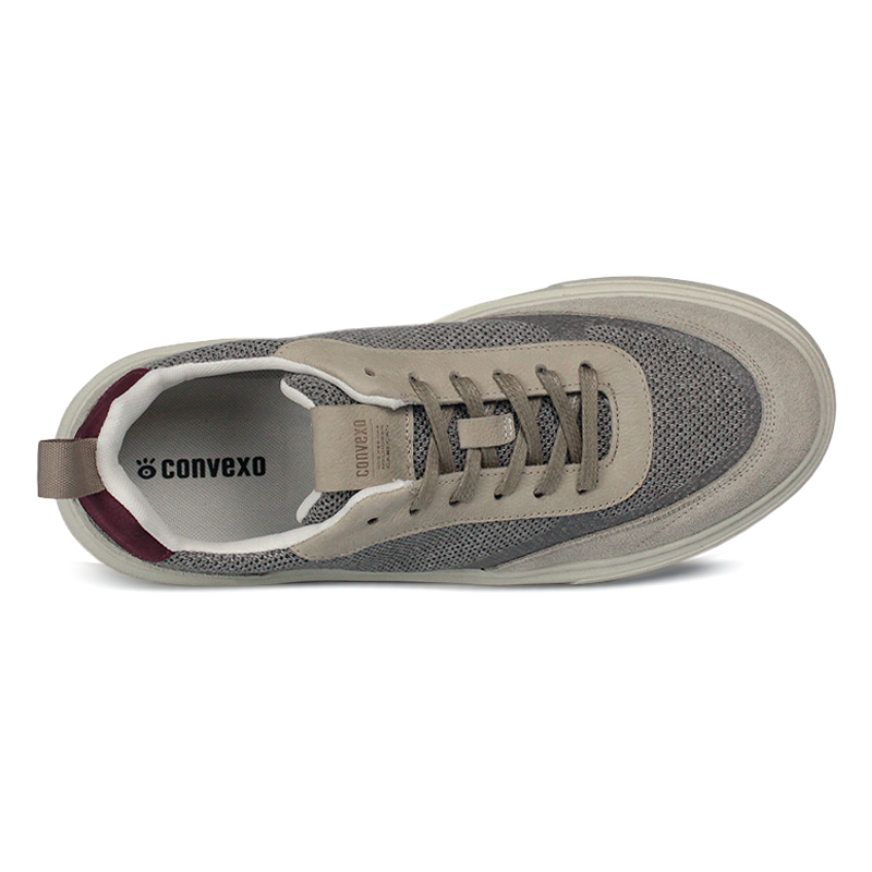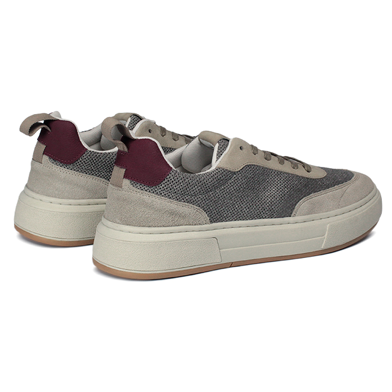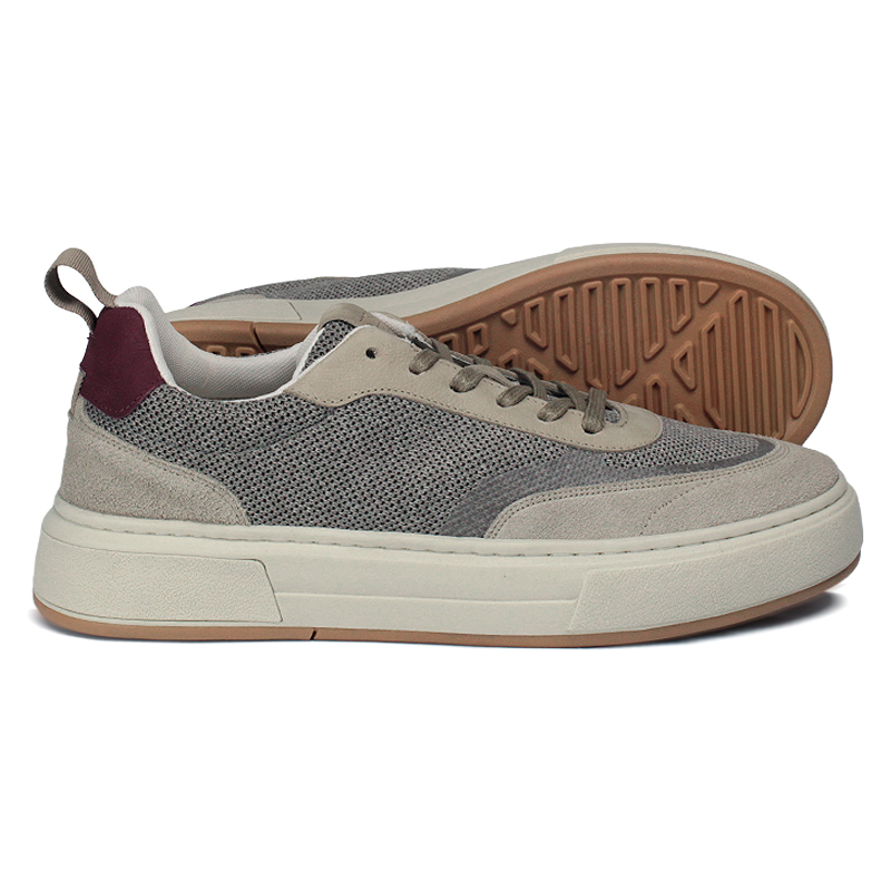 O Tênis Damon Chumbo/Areia/Vinho combina malha cinza de alta respirabilidade com sobreposições em camurça bege, criando um visual neutro e sofisticado. O detalhe em couro vinho no calcanhar adiciona contraste sutil e moderno. O solado em borracha termoplástica (TR) oferece estabilidade e durabilidade no uso diário. A palmilha em EVA garante mais conforto ao caminhar. O cadarço 100% algodão com acabamento encerado assegura melhor ajuste e toque refinado, e o puxador traseiro facilita o calce. Produção artesanal e nacional, feita com materiais de alta qualidade e certificados, reforçando o cuidado em cada detalhe.