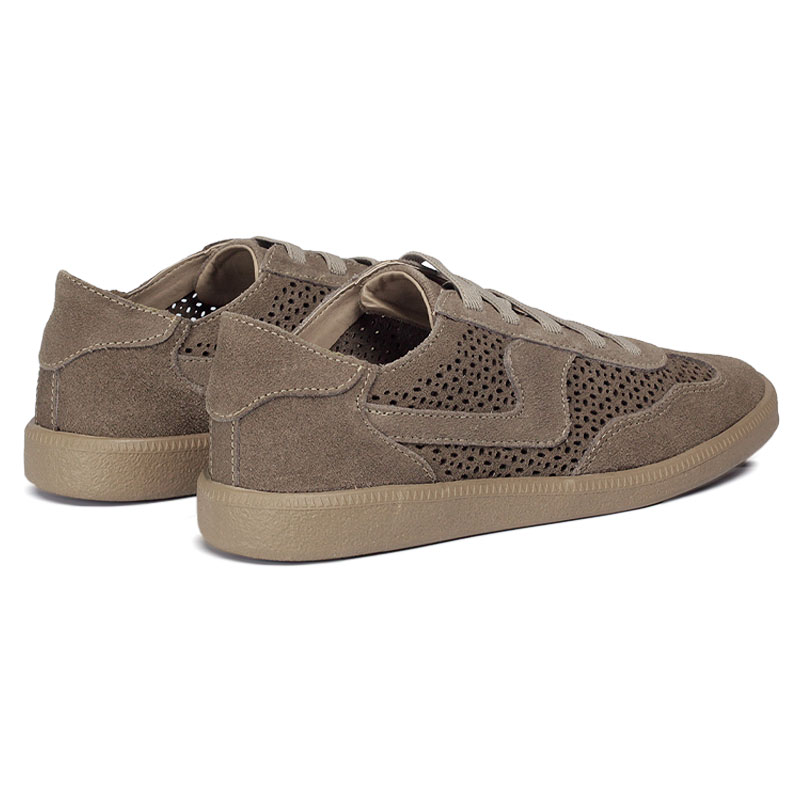 O Tênis Nina Taupe é produzido em camurça e traz cortes a laser que criam um visual marcante com leveza. Sem forro e com cadarços elásticos, proporciona um calce prático e ajustado ao pé. O solado em borracha completa a base com firmeza e durabilidade.