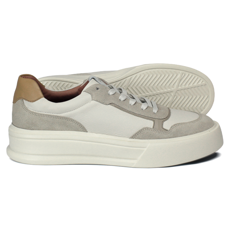 O Tênis Yann Neve/Areia traduz um visual moderno e elegante em uma paleta neutra e atemporal. Desenvolvido em tons claros, combina diferentes texturas para um efeito sofisticado, com aplicação estratégica de camurça que valoriza o design do cabedal. O solado Beat, leve e robusto, garante um perfil esportivo discreto e versátil, permitindo transitar facilmente entre combinações casuais ou mais refinadas, como calças de sarja e camisas leves. A palmilha em EVA conformado, revestida em couro vacum premium, proporciona maciez e adaptação anatômica para uso prolongado. O cadarço 100% algodão com acabamento encerado reforça o ajuste preciso e dá um toque refinado ao acabamento.