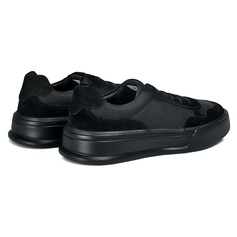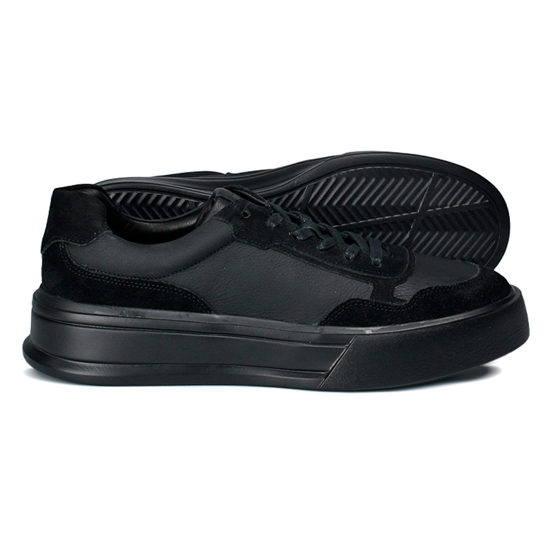 O Tênis Yann Preto/Grafite traduz um visual moderno e elegante em uma paleta neutra e atemporal. Desenvolvido na cor preto, combina diferentes texturas para um efeito sofisticado, com aplicação estratégica de camurça que valoriza o design do cabedal. O solado Beat, leve e robusto, garante um perfil esportivo discreto e versátil, permitindo transitar facilmente entre combinações casuais ou mais refinadas, como calças de sarja e camisas leves. A palmilha em EVA conformado, revestida em couro vacum premium, proporciona maciez e adaptação anatômica para uso prolongado. O cadarço 100% algodão com acabamento encerado reforça o ajuste preciso e dá um toque refinado ao acabamento.
