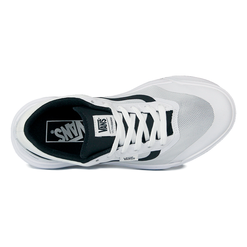 Desenvolvido inicialmente para atender as necessidades dos atletas de surf da Vans, o MTE Ultrarange 2.0 RW White/Black representa a nova geração de um dos modelos mais versáteis da marca. Nesta versão, ele mantém o visual clean em branco com detalhes em preto e ganha um design atualizado, com solado reformulado, suporte aprimorado e ajuste mais espaçoso, pensado para quem está sempre em movimento. O cabedal de mesh respirável com têxteis reciclados traz leveza e ventilação, enquanto as sobreposições com tecnologia Rapidweld reforçam as áreas de maior atrito sem adicionar peso extra. A biqueira emborrachada moldada aumenta a durabilidade na região frontal, e a trava no calcanhar ajuda a manter o pé firme dentro do tênis, contribuindo para uma sensação estável durante o uso. Na base, a entressola UltraCush™ Lite oferece amortecimento macio com sensação leve e responsiva a cada passada. Já o solado de borracha com padrão reverse waffle garante tração flexível em diferentes tipos de piso, entregando segurança tanto no dia a dia quanto em atividades leves ao ar livre. O resultado é um tênis de cano baixo leve, estruturado e pronto para acompanhar rotinas longas com conforto consistente.