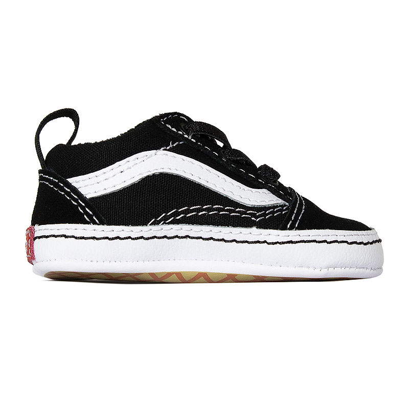 O Vans Old Skool Crib Black/True White adapta o visual clássico da marca para os pés dos bebês. Inspirado no modelo original, traz cabedal de lona com detalhes em camurça e a icônica sidestripe nas laterais. O design conta com cadarços elásticos e puxadores no calcanhar, facilitando o calce no dia a dia. A sola macia com estampa que simula o padrão waffle da Vans adiciona um toque divertido, enquanto o heel scab aplicado no calcanhar reforça a identidade da marca.