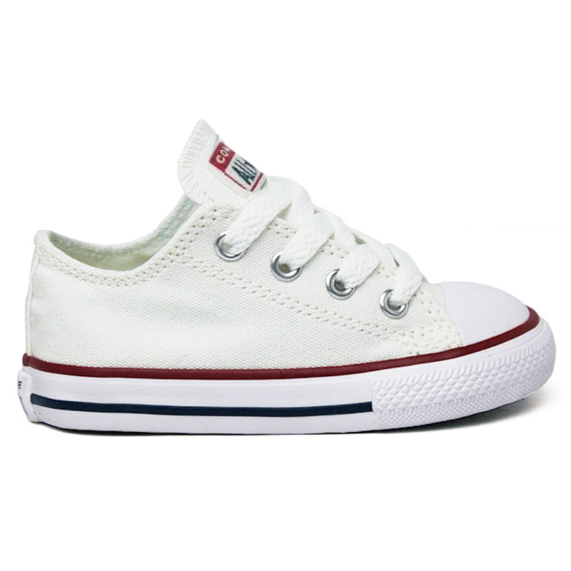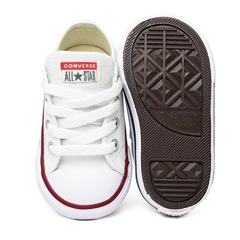 O All Star Baby Core OX Branco adapta o design clássico do Chuck Taylor para os primeiros passos. Produzido com cabedal em lona leve e respirável, oferece conforto e flexibilidade ideais para a rotina dos pequenos. A construção macia facilita os movimentos e o fechamento com cadarço garante ajuste firme. O solado de borracha vulcanizada oferece aderência e estabilidade, contribuindo para mais segurança ao caminhar.