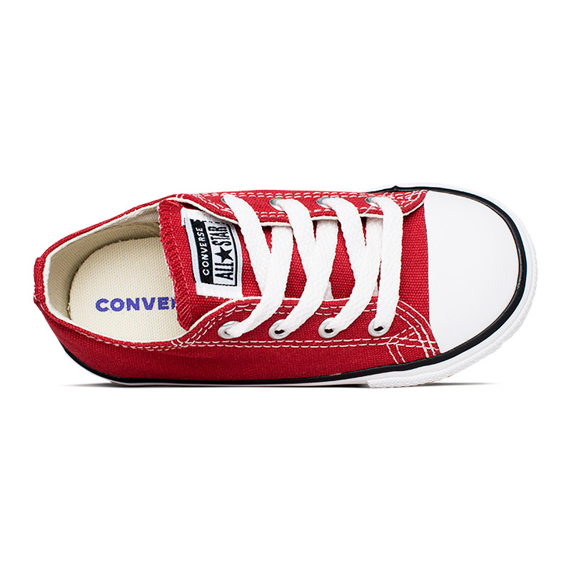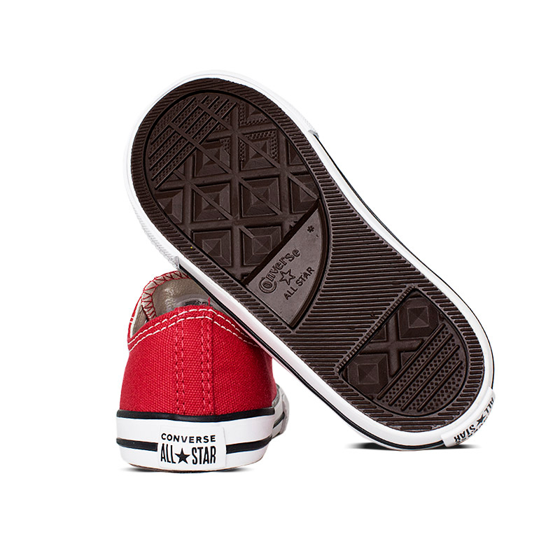 O All Star Baby Core OX Vermelho traduz a essência do Chuck Taylor All Star em uma versão adaptada para os pequenos. Com cabedal em lona resistente, oferece leveza e respirabilidade ideais para o uso diário. A sola de borracha vulcanizada garante aderência firme e maior tração em diferentes superfícies. O design de cano baixo mantém o visual clássico, com costuras reforçadas e acabamentos que garantem durabilidade.
