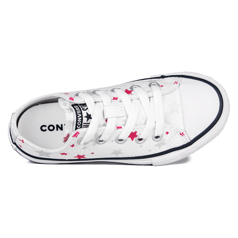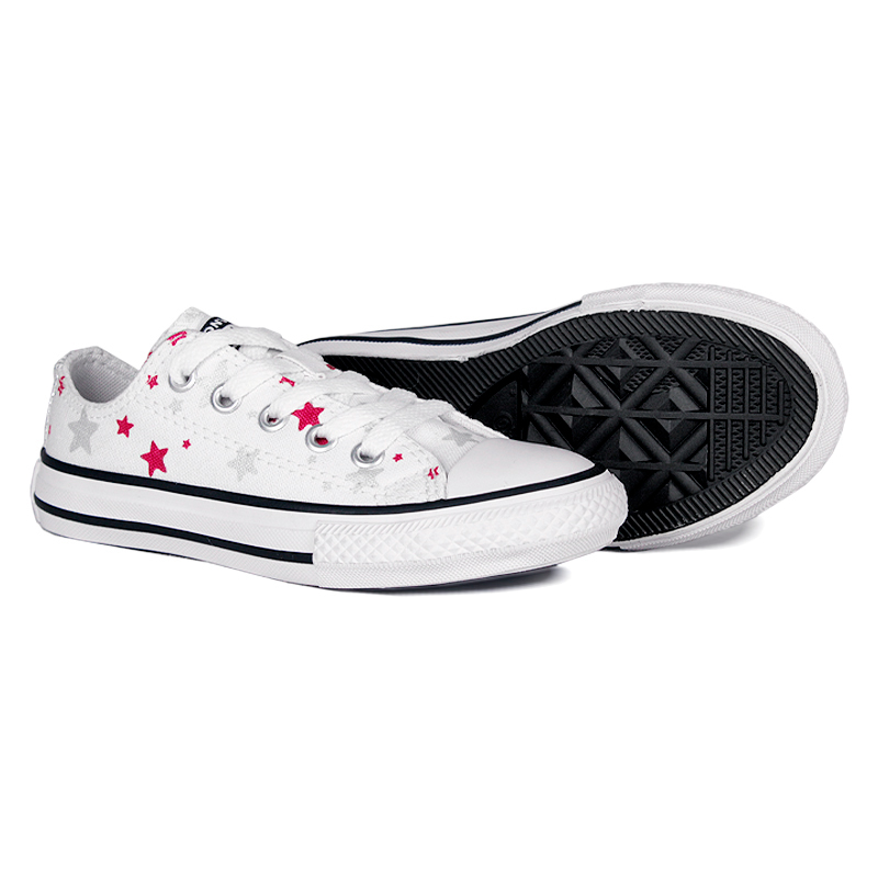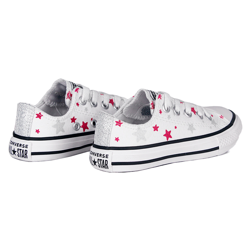 O All Star Kids Ox Star Branco são um convite ao universo das estrelas, com seu design envolvente repleto de estrelas brilhantes. Feitos com materiais resistentes em lona, proporcionam ao seu pequeno um impulso cheio de energia. O amortecimento em EVA oferece conforto duradouro, acompanhando cada passo ao longo do dia. Possui o logo patch clássico "Chuck Taylor All Star" no cano.