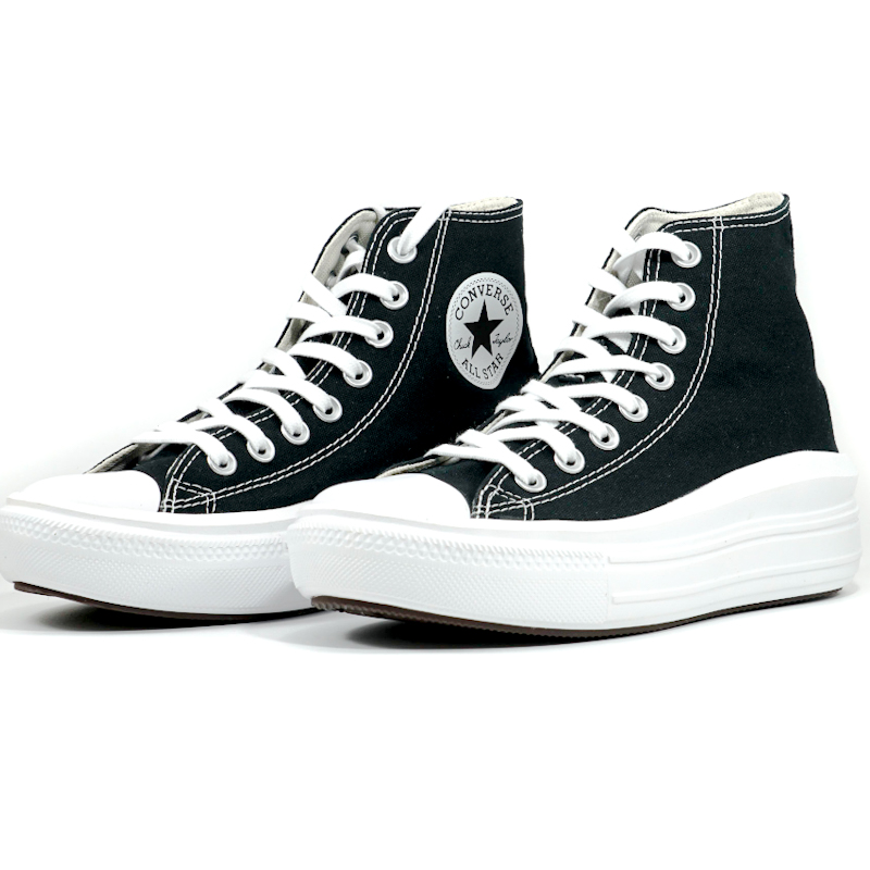 O All Star Move Hi Preto eleva o design tradicional da Converse com uma proposta mais leve e moderna. A construção em canvas resistente mantém a essência do modelo clássico, agora sobre uma plataforma robusta de 44 mm em EVA ultraleve, que oferece amortecimento suave e visual imponente. A palmilha em PU moldado garante conforto durante o uso, enquanto os ilhós chanfrados e o patch icônico no tornozelo reforçam a identidade da marca com um toque contemporâneo.