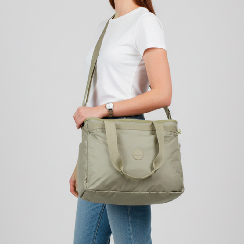 A Bolsa Bora é um tote funcional em nylon poliéster: leve, resistente e fácil de limpar. Traz compartimento principal com zíper superior, bolso frontal de acesso rápido e organização interna com subdivisórias para separar itens. Vem com alças de mão reforçadas e alça tiracolo regulável e destacável para uso no ombro ou transversal. DIMENSÕES APROXIMADAS: 35 cm (L) × 28 cm (A)