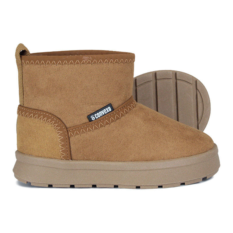 A Bota Ana Baby foi pensada para acompanhar os primeiros passos com conforto, proteção e facilidade no calce. Produzida em camurça, ela oferece toque macio e estrutura firme, mantendo o pé bem acomodado durante o uso diário. O cano curto facilita o movimento natural da criança, sem limitar a mobilidade. Por dentro, o forro em pelo sintético cria uma camada aconchegante, ajudando a manter os pés aquecidos em dias mais frios. A palmilha removível permite melhor higienização, enquanto o solado emborrachado garante estabilidade e aderência em diferentes superfícies. O modelo conta com puxadores no calcanhar, que facilitam o calce e o ajuste no pé, além de tag da marca aplicada na lateral, reforçando a identidade Convexo com acabamento discreto.