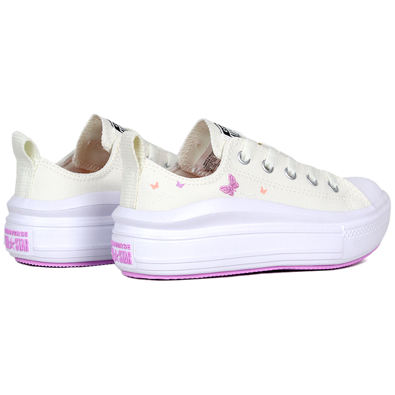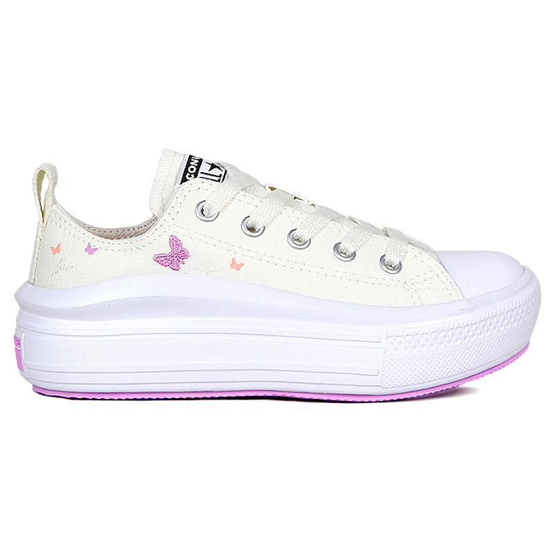 O Chuck Taylor All Star Move Kids Ox Festival Branco combina o charme das borboletas bordadas com o visual clássico da lona, criando um toque divertido e lúdico. A sola em EVA oferece leveza e elevação, conforto conforto durante o dia. Com detalhes delicados de verão no salto e nas calças, este modelo traz um design atemporal com um toque de criatividade.
