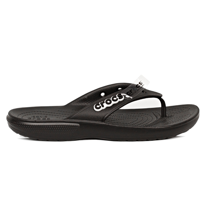 Original. Versátil. Confortável. A mesma aparência do incrivelmente popular Classic Flip, agora com seis furos em cada sandália para permitir a personalização definitiva com os charms Jibbitz™. O Crocs Classic Flip Black tem palmilha texturizada com construção clássica de espuma Croslite™ que amortece sua caminhada. Leve e divertido de usar!
