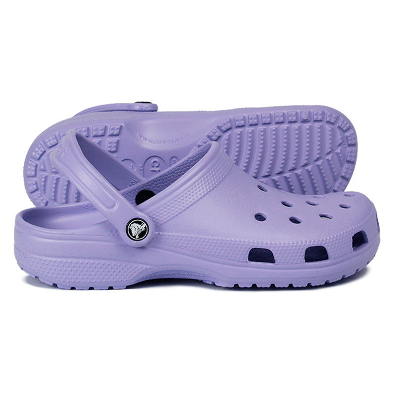 A Crocs Classic Mystic Purple traz o ícone da marca em um tom de roxo vibrante, com construção inteira em material Croslite™ leve e macio. O cabedal moldado com furos de ventilação na parte frontal ajuda na respiração do pé e permite a personalização com pins Jibbitz™, mantendo o visual divertido sem abrir mão da funcionalidade. O formato anatômico e o solado em Croslite™ trabalham juntos para distribuir melhor a pressão da pisada, oferecendo amortecimento e suporte de arco em 360 graus. A tira traseira pivotante pode ser posicionada para frente, deixando o calce mais rápido, ou para trás, garantindo um encaixe mais seguro no calcanhar quando você precisa de mais firmeza ao caminhar. Além de ser fácil de calçar e descalçar, a Crocs Classic Mystic Purple é resistente à água, seca rápido e é simples de limpar, ideal para rotinas que envolvem ambientes úmidos ou que exigem praticidade no dia a dia. O solado leve, com boa aderência e que não marca o piso, completa um modelo pensado para entregar conforto prolongado em diferentes momentos de uso.