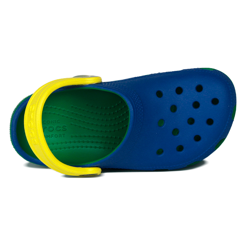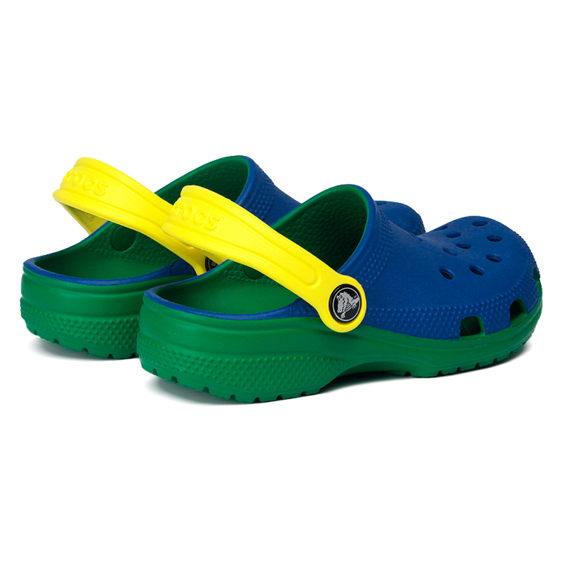 Inspirado no visual das camisetas esportivas retrô, o Crocs Classic Retro Sport Clog infantil combina estilo e conforto para o dia a dia. Seu design em blocos de cores traz um toque divertido e esportivo, enquanto a construção em espuma Croslite™ garante leveza, suporte e maciez a cada passo. Possui tira giratória no calcanhar para um ajuste seguro e é compatível com Jibbitz™, permitindo personalização exclusiva. Com o Iconic Crocs Comfort™, oferece flexibilidade e conforto de 360 graus, perfeito para acompanhar os pequenos em todas as aventuras.