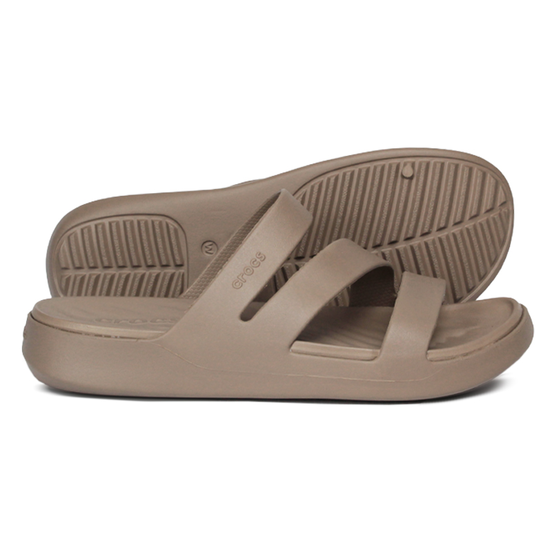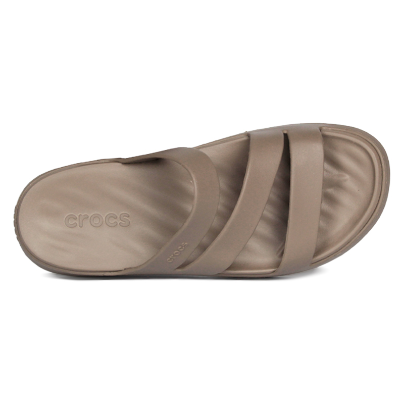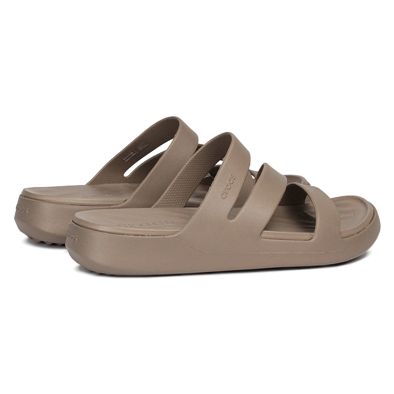 A Crocs Getaway Strappy Truffle traz um novo nível de conforto com a exclusiva Free Feel Technology™, que proporciona sensação ultraleve e natural, como se você não estivesse usando nada nos pés. Suas tiras extremamente macias e flexíveis se ajustam ao movimento, oferecendo liberdade total em cada passo, enquanto a palmilha em Croslite™ garante suavidade ao caminhar. O design espaçoso acomoda diferentes formatos de pés, embora as tiras possam ficar mais soltas em pés estreitos. Versátil e moderna, essa sandália leve e flexível é perfeita para acompanhar sua rotina ou momentos de lazer, com plataforma de 3,5 cm que adiciona altura sem abrir mão do conforto.