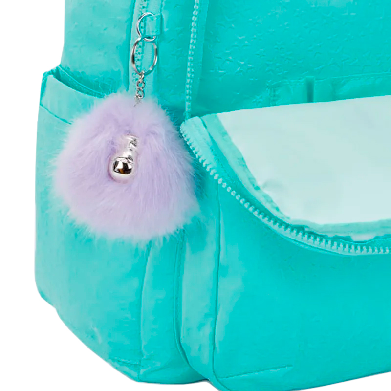 A Mochila Kipling Seoul Funky Stars Emb é a versão grande da linha Seoul em um tom de verde com acabamento bordado em estrelas, unindo bastante espaço interno com um visual divertido. Produzida em poliéster resistente, ela oferece litragem de 27 L e dimensões aproximadas de 44–45 cm de altura x 34–35 cm de largura x 21–23 cm de profundidade, acomodando livros, cadernos, estojo, notebook e outros itens do dia a dia sem perder o formato. O corpo da Seoul Funky Stars Emb é dividido em 4 compartimentos principais com zíper, além de 3 bolsos frontais e 2 bolsos laterais ideais para garrafinha ou guarda-chuva. No compartimento principal, há espaço para materiais em tamanho A4 e uma repartição acolchoada para notebook (até 15"), além de bolsos internos que ajudam a organizar itens menores, como carregadores, cabos e acessórios de uso diário. Um bolso extra com zíper próximo à alça de mão facilita o acesso rápido a miudezas como chaves, cartões e fones. Para carregar tudo com conforto, a mochila conta com alças de ombro acolchoadas e ajustáveis, painel traseiro semi-estruturado e alça superior reforçada. O acabamento Funky Stars Emb combina o verde de base com estrelas bordadas que dão textura e identidade ao modelo, enquanto o chaveiro de macaco clássico da Kipling acompanha o produto.