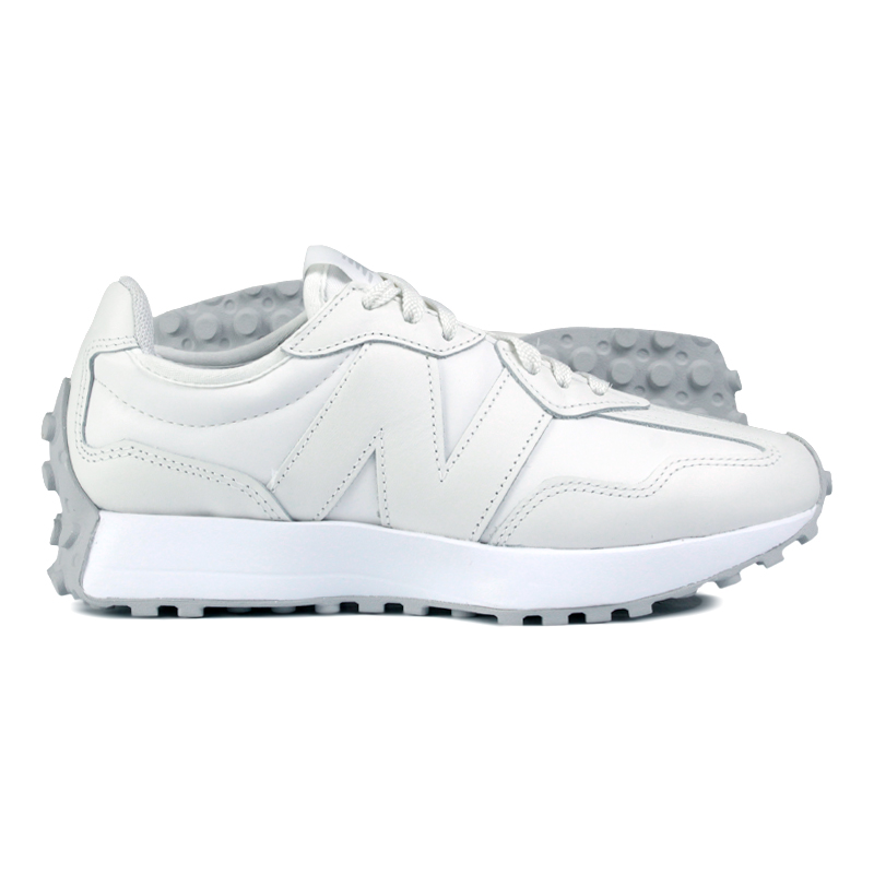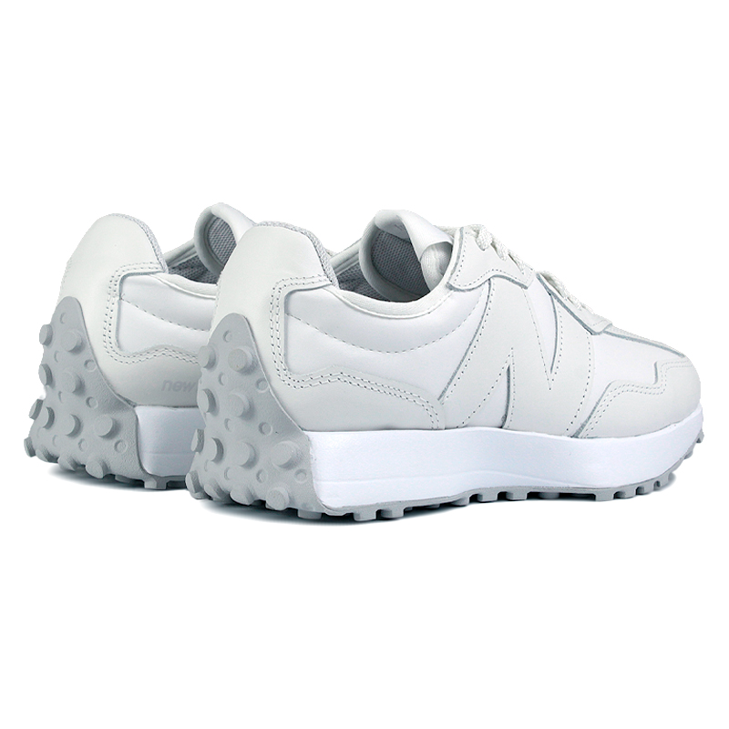 O New Balance 327 V1 Couro Branco W3275FE é a versão mais limpa e estruturada da silhueta 327, construída inteiramente em couro, com foco em durabilidade, acabamento e leitura urbana mais sofisticada. Inspirado nos tênis de corrida dos anos 70, o modelo mantém o design característico da linha, agora com materiais sólidos e visual uniforme. O cabedal em couro liso branco oferece estrutura firme, melhor retenção de forma e maior resistência ao uso contínuo. O grande logo “N” lateral em couro aplicado reforça a identidade do modelo, mantendo a proposta monocromática. O acabamento é preciso, com costuras aparentes bem definidas e painéis pensados para estabilidade. A entressola em EVA proporciona amortecimento leve e constante para o uso diário, enquanto o solado em borracha com desenho inspirado em modelos trail vintage se estende até o calcanhar, garantindo aderência e assinatura visual característica do 327.