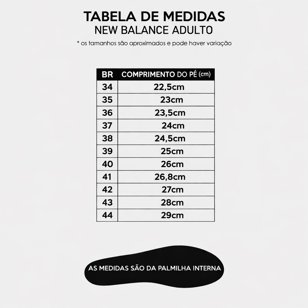 | Tamanho | 38, 39, 40, 41, 42, 43 |