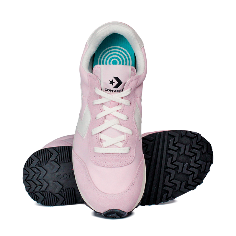 O Omega Trainer Summit Pink/Sugarberry/Vintage White combina referências do running dos anos 80 com uma proposta atual e funcional. O cabedal mistura suede com painéis em mesh, criando um visual retrô com leveza e respirabilidade. A entressola em EVA garante amortecimento sem adicionar volume, enquanto a palmilha Converse Comfort proporciona suporte extra para o uso diário. A sola de borracha com padrão chevron oferece tração eficiente em diferentes superfícies. O logo Star Chevron na lateral reforça o legado esportivo da Converse com autenticidade e atitude urbana.