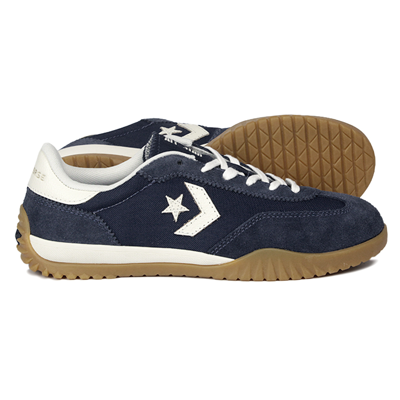 O Run Star Trainer Marinho/Amêndoa combina design robusto e estilo versátil para acompanhar a rotina com conforto e autenticidade. Seu cabedal em tecido recebe sobreposições em camurça que agregam textura e sofisticação, enquanto a aplicação lateral em chevron sintético reforça o DNA da Converse. A lingueta com logo gravado e o detalhe traseiro em material sintético trazem acabamento moderno. Para o dia a dia, a palmilha em PU com EVA garante maciez prolongada, e o solado emborrachado oferece tração eficiente. Os cadarços de algodão 6mm completam o ajuste firme e funcional.