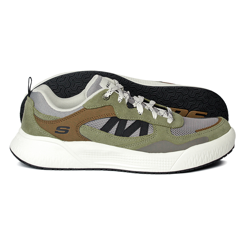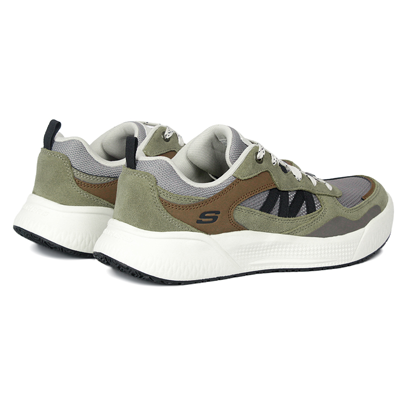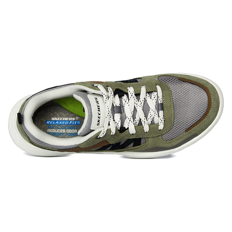 O Skechers Cyrus Sunspot apresenta cabedal em mesh com sobreposições sintéticas, combinando respiro e robustez com visual contemporâneo. A palmilha Air-Cooled Memory Foam® com carvão ativado traz maciez e controle de odores, enquanto o suporte anatômico Memory Arch™ oferece estabilidade contínua. A tecnologia Relaxed Fit® garante espaço desde a frente do pé, contribuindo para encaixe mais confortável. O solado flexível complementa a experiência com tração segura e adaptabilidade.