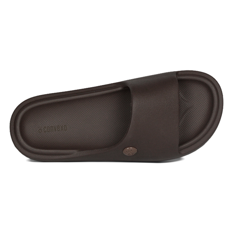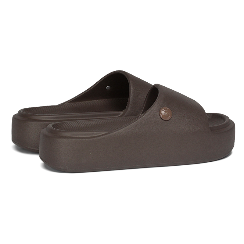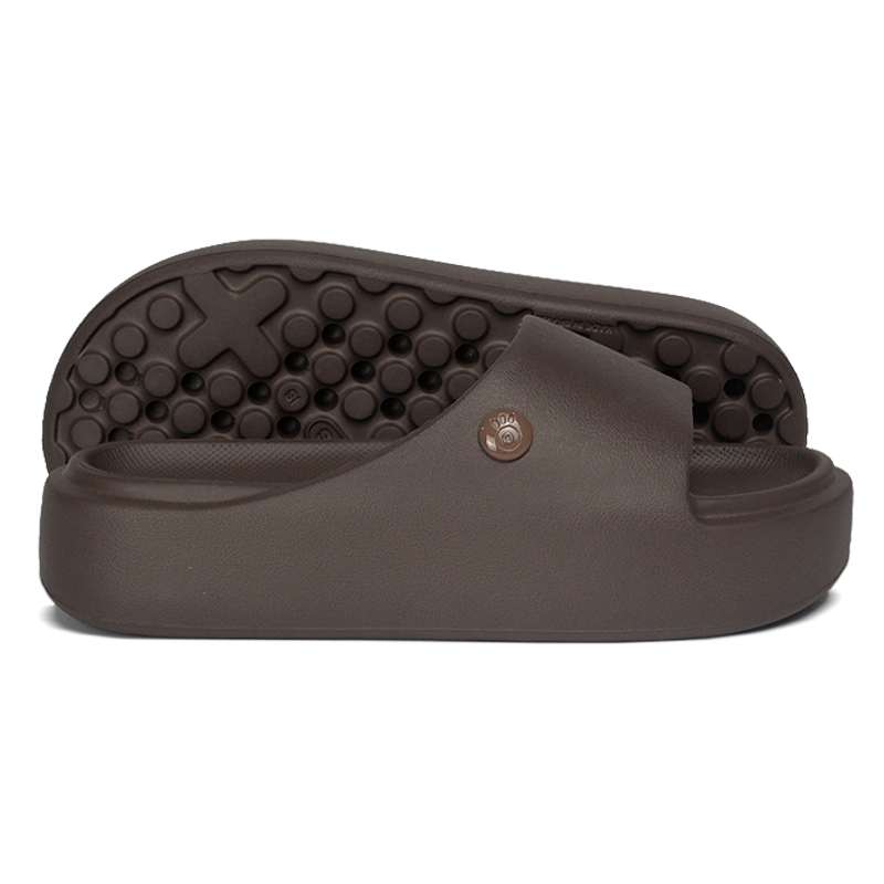 O Slide Mimo traz visual clean com conforto imediato: construção monobloco em EVA expandido (leve, flexível e fácil de limpar), tira larga com toque levemente fosco e palmilha texturizada com berço de calcanhar para segurar o pé. A base tem plataforma leve e solado antiderrapante com esferas em relevo para melhor tração.