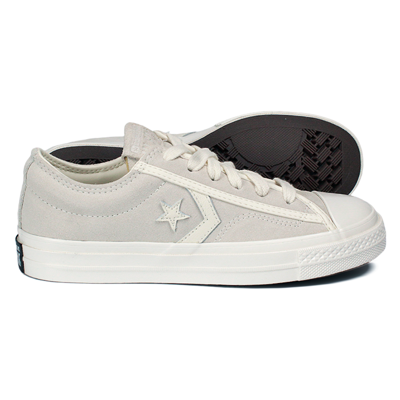 O Star Player 76 Suede Egret combina referências vintage com atitude urbana. Inspirado nos catálogos de skate dos anos 2000, o modelo resgata detalhes clássicos em uma silhueta atualizada para o dia a dia — dos festivais aos rolês de rua. O cabedal em suede resistente é combinado a detalhes em couro, como o icônico Star Chevron lateral. A lingueta com espuma exposta reforça o visual retrô, junto aos ilhoses perfurados e cadarços largos. A entressola mais larga e a gola acolchoada oferecem ajuste mais espaçoso que os Chucks tradicionais, com amortecimento OrthoLite para maior conforto em todos os momentos.