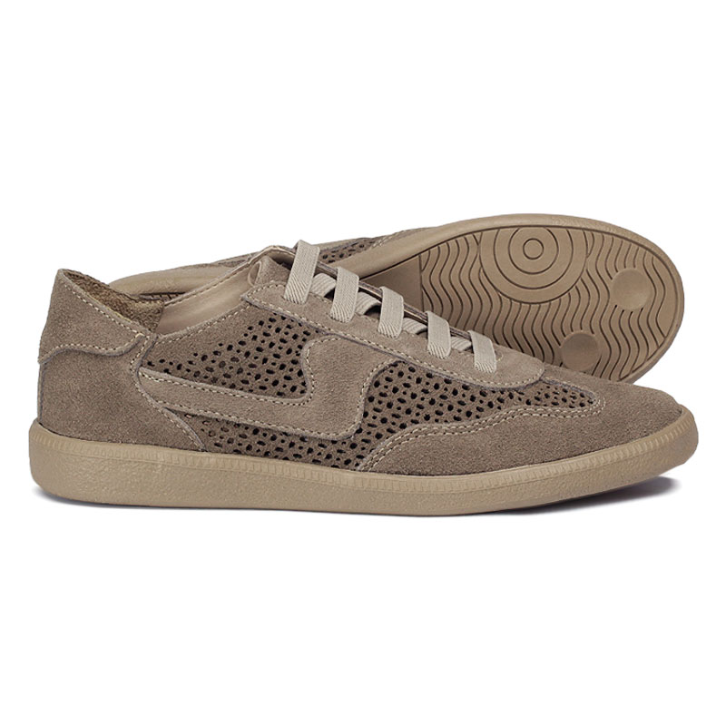 O Tênis Nina Taupe é produzido em camurça e traz cortes a laser que criam um visual marcante com leveza. Sem forro e com cadarços elásticos, proporciona um calce prático e ajustado ao pé. O solado em borracha completa a base com firmeza e durabilidade.