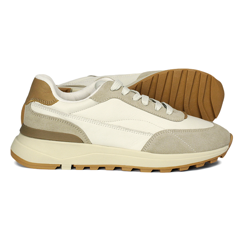 O Tênis Trainer Areia/Neve une construção robusta e visual contemporâneo em uma leitura urbana. Desenvolvido em couro premium com aplicações de camurça, traz textura e contraste na medida certa. O solado gum com base tratorada garante aderência em diferentes superfícies, enquanto os tons neutros ampliam as possibilidades de uso. O interior macio proporciona bem-estar ao longo do dia sem abrir mão da estrutura.