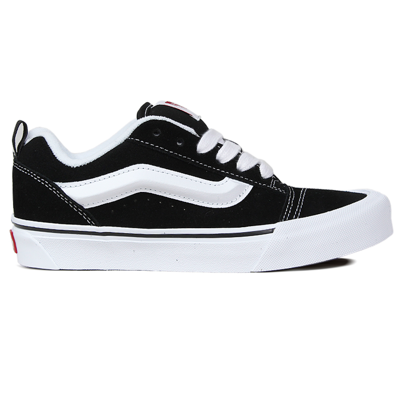 O Knu Skool Black/True White apresenta um estilo volumoso inspirado nos anos 90, com linguagem robusta e Sidestripe™ moldada em 3D. Este relançamento contemporâneo do clássico cano baixo da Vans conta com cabedal de camurça resistente, colarinho acolchoado e cadarços oversized. Puxadores no calcanhar facilitam o calce, enquanto a sola de borracha waffle exclusiva mantém o conforto Vans.