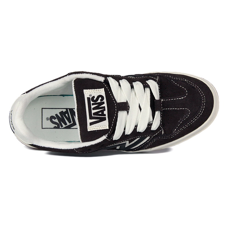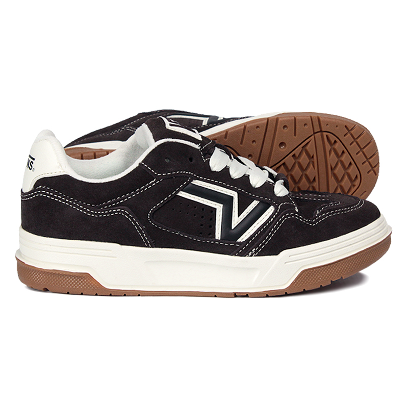 O Vans Upland Contrast Stitch After Dark resgata a estética robusta dos tênis de cano baixo dos anos 90 em uma construção atualizada para o uso diário. O cabedal em couro e material sintético preto recebe costuras contrastantes aparentes, criando linhas marcadas que reforçam o visual chunky da silhueta. O logotipo moldado “Flying V” na lateral e o branding em destaque na língua conectam o modelo ao legado da Vans, enquanto os cadarços largos completam o pacote com uma leitura mais pesada e retrô. Para conforto e suporte, o Upland aposta em gola bufante e língua acolchoada, que abraçam melhor o peito do pé e a região do tornozelo. O formato de pé redesenhado melhora o encaixe geral, trazendo sensação de ajuste mais estável sem perder a flexibilidade necessária para o dia a dia. A entressola costurada que envolve todo o tênis aumenta a durabilidade da construção e ajuda a manter a estrutura firme com o passar do tempo. Na base, a cupsole de borracha garante suporte sob os pés e tração consistente em diferentes superfícies, mantendo o modelo pronto tanto para a rotina urbana quanto para quem busca um tênis mais robusto com DNA Vans bem evidente.