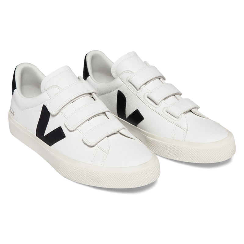 O Veja Recife Logo Chromefree Leather White/Black é produzido em couro de alta qualidade, livre de cromo e com baixos níveis de produtos químicos, seguindo as normas REACH. O acabamento metalizado e o fechamento em velcro dão um toque de modernidade ao calçado. O logo Veja é aplicado em camurça na lateral e no calcanhar, proporcionando mais estilo ao modelo. O forro interno é feito de poliéster reciclado de garrafas PET, enquanto a palmilha em EVA expandido com borracha garante conforto e durabilidade. O solado em cupsole é produzido com borracha nativa da Amazônia de forma sustentável, trazendo aderência e segurança em cada passo.